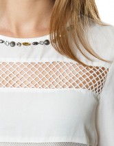 Esta blusa blanca con malla en franjas te dará ese toque pícaro que quieres en una salida al comienzo de la semana.