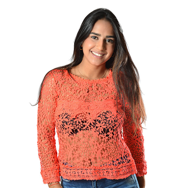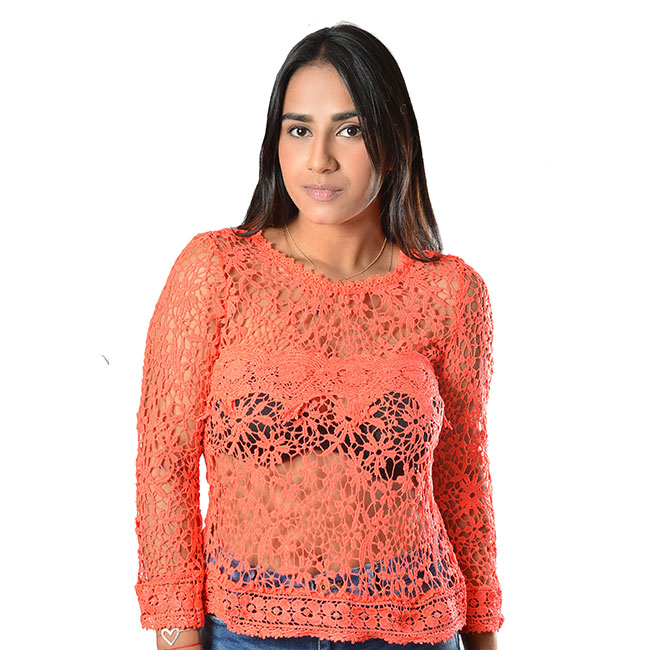 Con la blusa naranja neon de MD Cuore, la sencillez y hermosura de tu look destacarán.